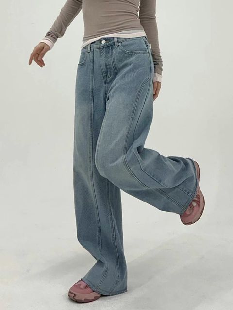 BE0612 垂墜單邊破壞丹寧褲|SML